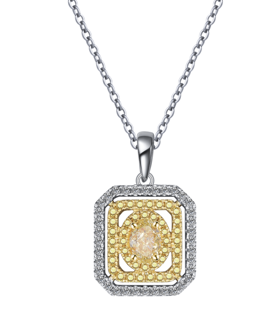 Natural Yellow & White Diamond Pendant 14k White Gold