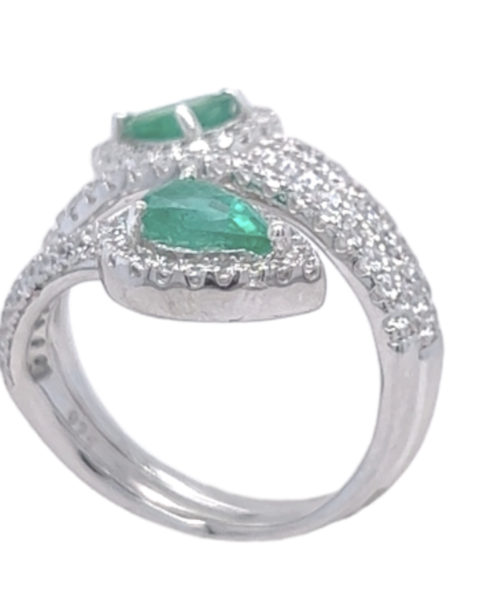 Emerald & Diamond ByPass Ring 18 k