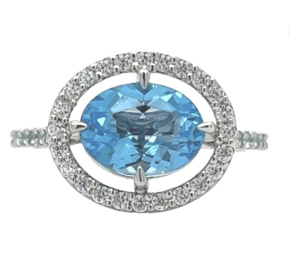 Oval Aqua & Diamond Ring